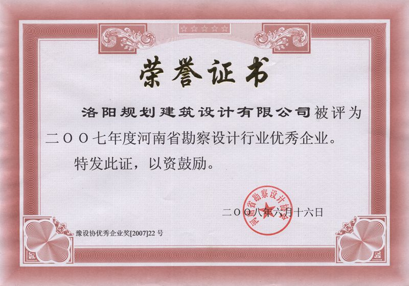 2007省勘察設(shè)計行業(yè)優(yōu)秀企業(yè)