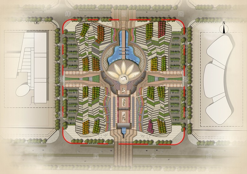 中心廣場(chǎng)位于哈密市西城新區(qū),整個(gè)中心廣場(chǎng)及周邊區(qū)域,包括北至緯四路,南至新民六路,東至經(jīng)六路,西至經(jīng)四路,占地面積87306㎡。