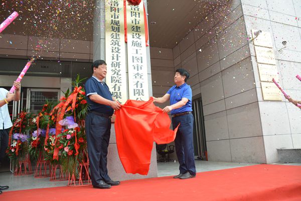 公司董事長姚金山和總經(jīng)理曹紅普為洛陽市建設(shè)施工圖審查有限公司揭牌